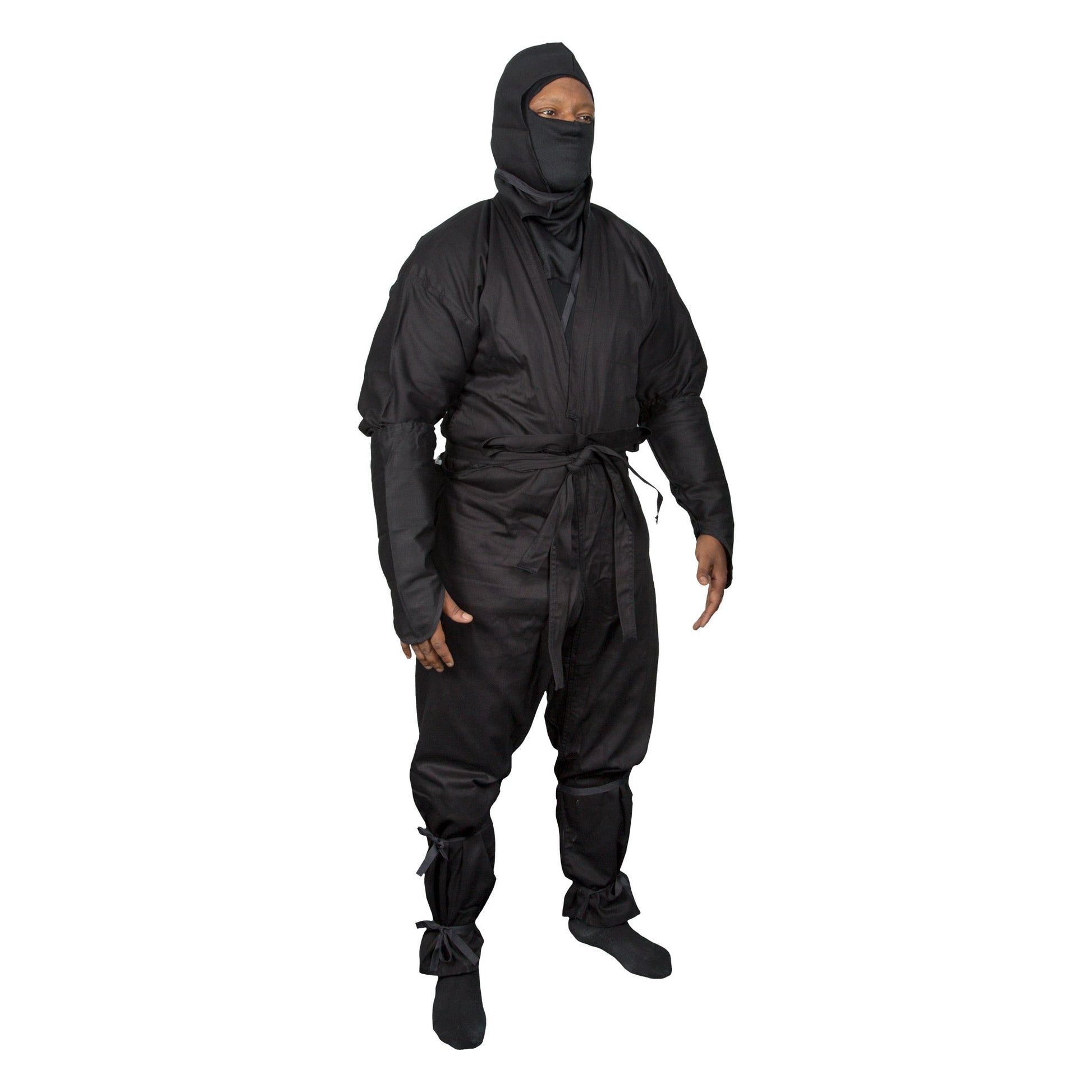 Maybe there is something special about this uniform. It's an authentic reproduction of a traditional Ninja outfit known as a Shinobi Shozoku. Made of 100% cotton, the uniform set consists of special trousers with double waist ties plus additional ties at the knees and ankles. The jacket features gauntlets on the sleeves to cover the hands and forearms. It also has a hidden shuriken pocket. The head piece comes in two parts–the hood and the mask, both with ties. This uniform is just like the real thing!